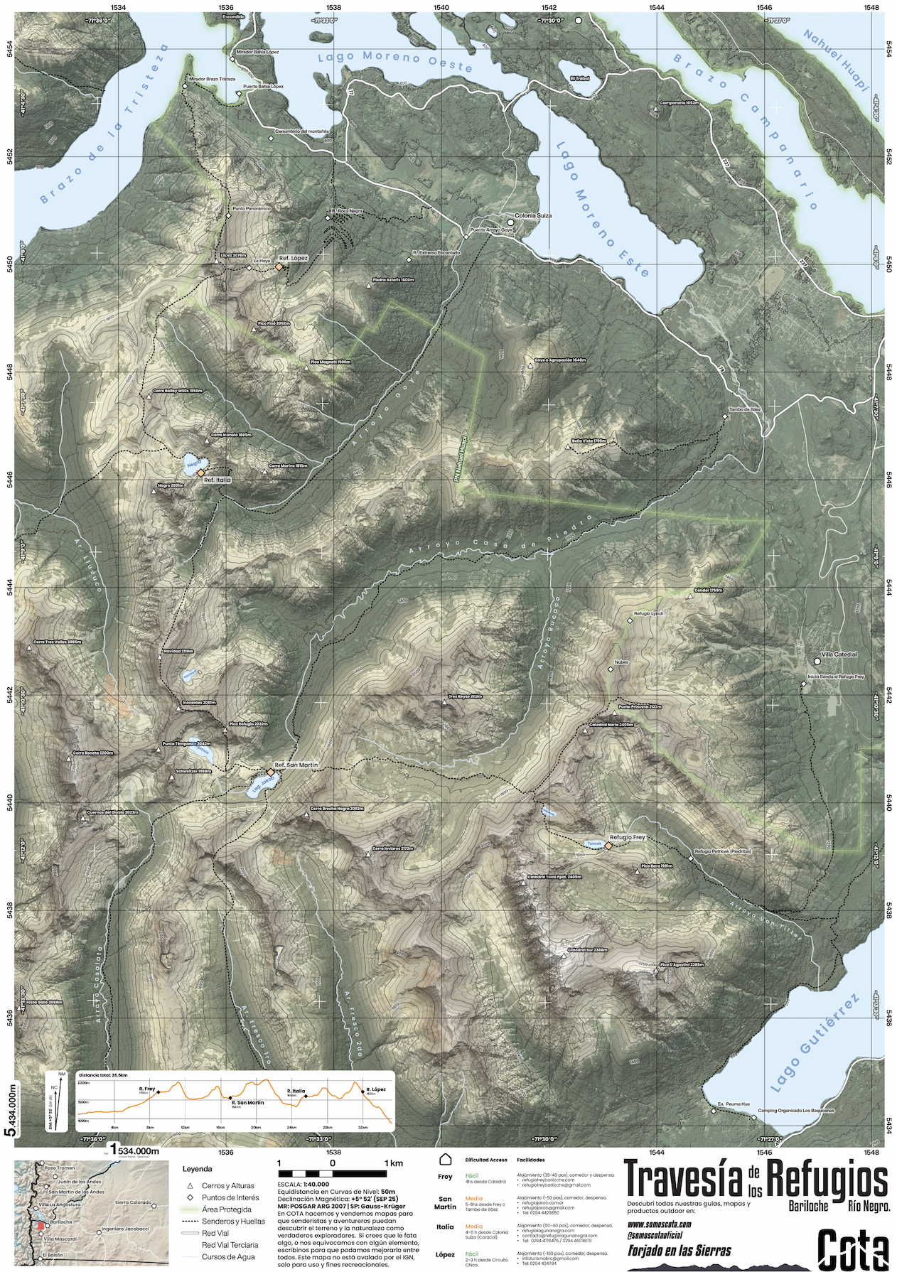 Mapa Travesía de los Cuatro Refugios, Bariloche, Río Negro.